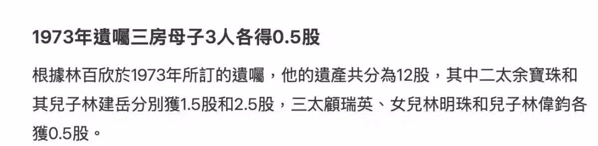 林建岳與三房妹妹爭產失敗,29億遺產重新分配,三房獲分3.6億