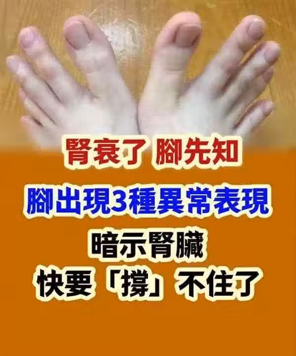 腎衰了,腳先知!腳如出現3種異常表現,暗示腎臟快要「撐」不住了!