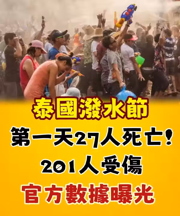 快訊/泰國潑水節第一天27人死亡!201人受傷 官方數據曝光