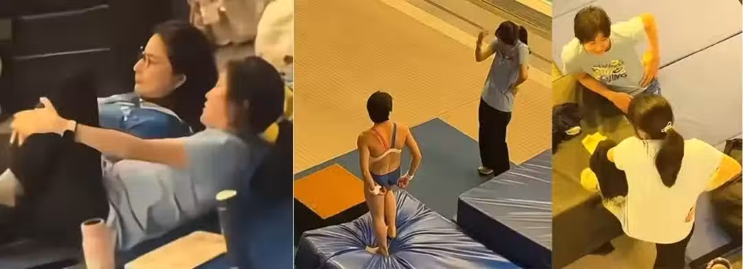 也讓我們看到了教練怎麼給運動員做拉伸運動,這些我們認為很難的動作,對她們來說都是輕而易舉的事。