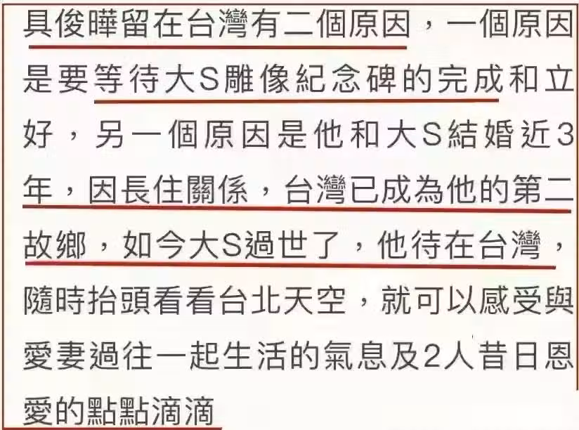 有消息稱具俊曄後續會定居台北,一來是為了陪伴大S,二來是為了能享受大S留給他的兩億遺產!