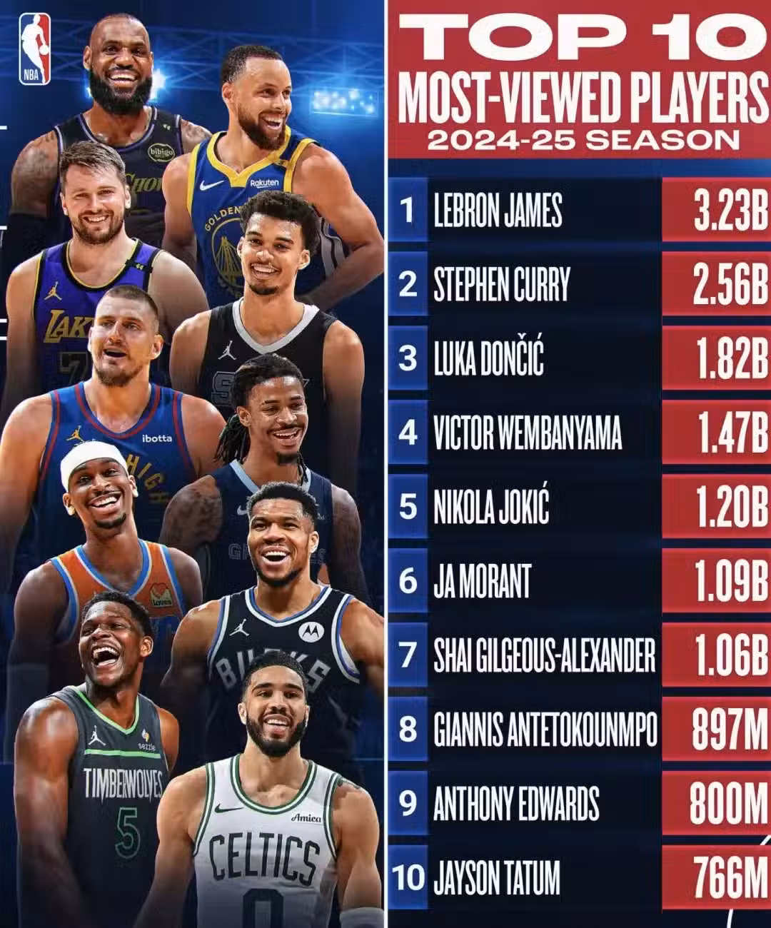 老詹的影響力擺在這,實至名歸。本賽季後半段的球衣銷量排行榜,東契奇排名所有球員第一,湖人隊排名球員裝備銷量第一。這也是2012-13賽季以來,首次有詹姆斯庫里以外的球員拿到球衣銷量榜第一。