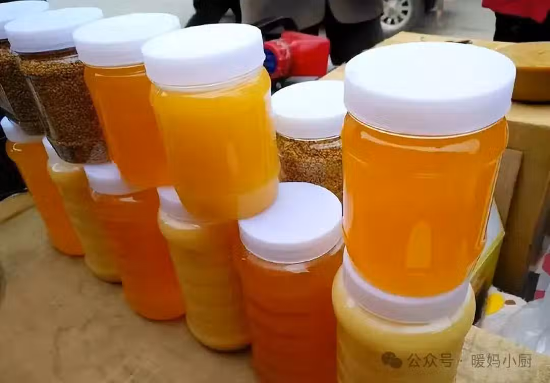 眾所周知,不少朋友買蜂蜜喜歡用顏色來分辨,所有一些不良商家就會使用綿白糖加白礬一起熬制,這樣就能熬制出淡淡黃色的糖液,尤其是裝瓶後看起來與蜂蜜十分相似,僅憑顏色幾乎難辨真假!
