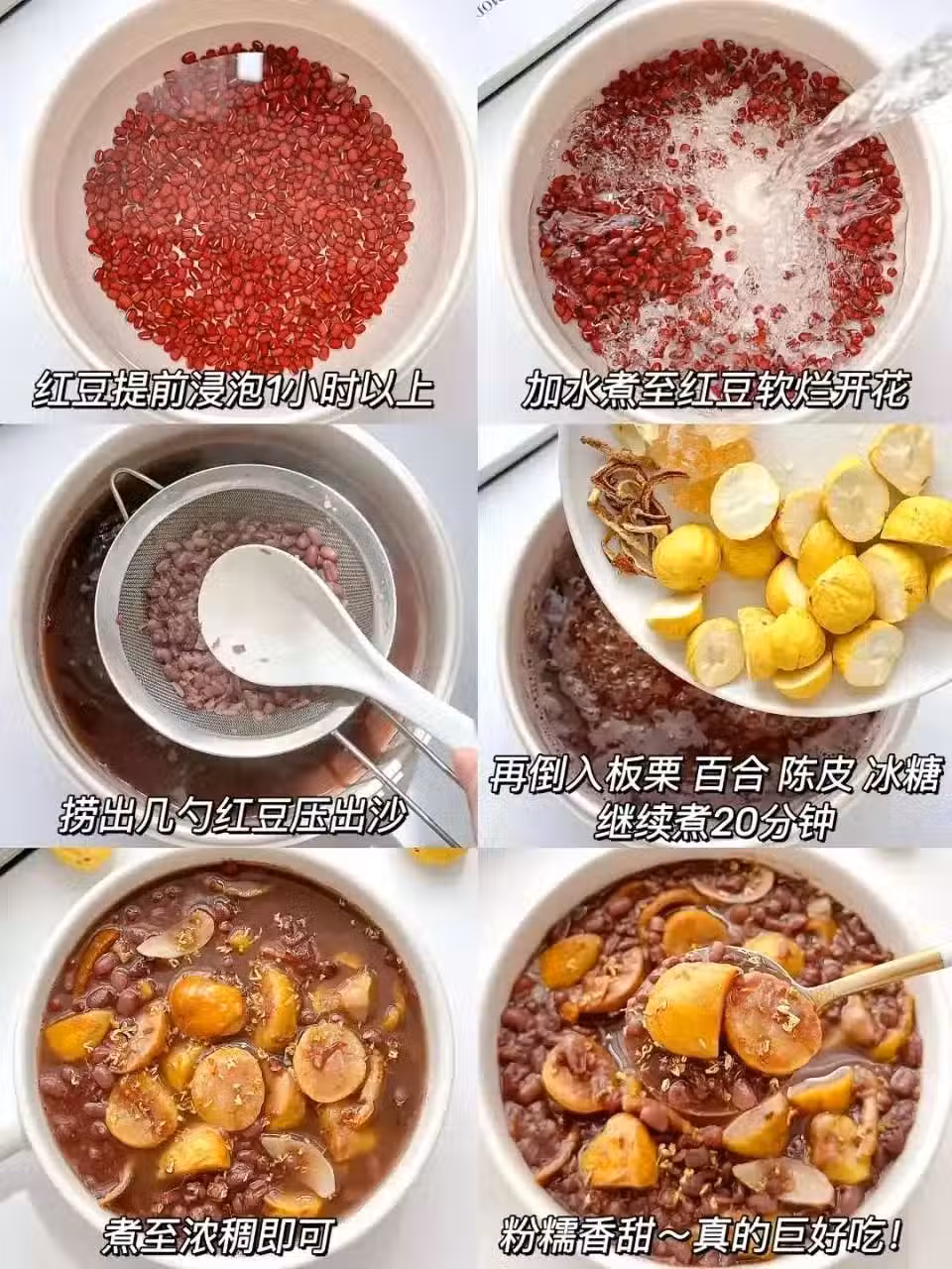 【食材】紅豆60g、紅花生米40g、枸杞20g、紅棗10顆、紅糖30g、糯米100g
