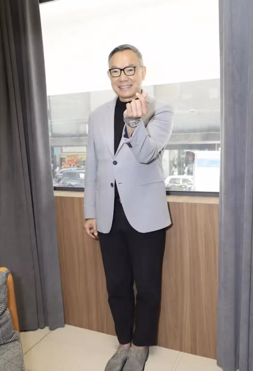 謝偉俊已經65歲了,個人狀態還是不錯的,整個人精神煥發。出席開幕式活動的時候,他穿了灰色的西裝,以黑色的T恤打底,戴了眼鏡, 顯得斯文、儒雅,兩鬢雖然已經花白,但是看起來不顯老,給人的感覺還是很有活力。