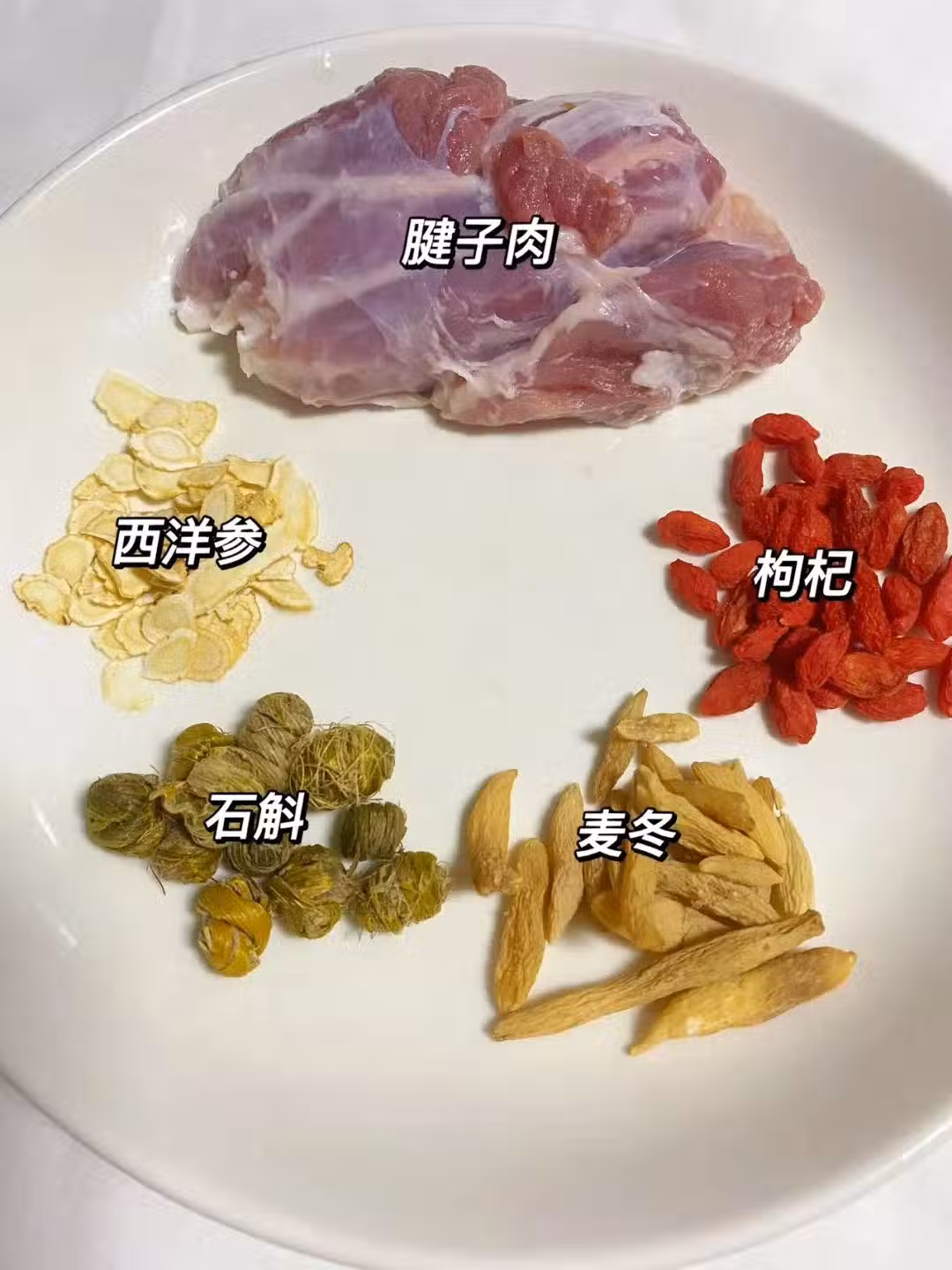 食材:腱子肉、麥冬、西洋參、枸杞、石斛