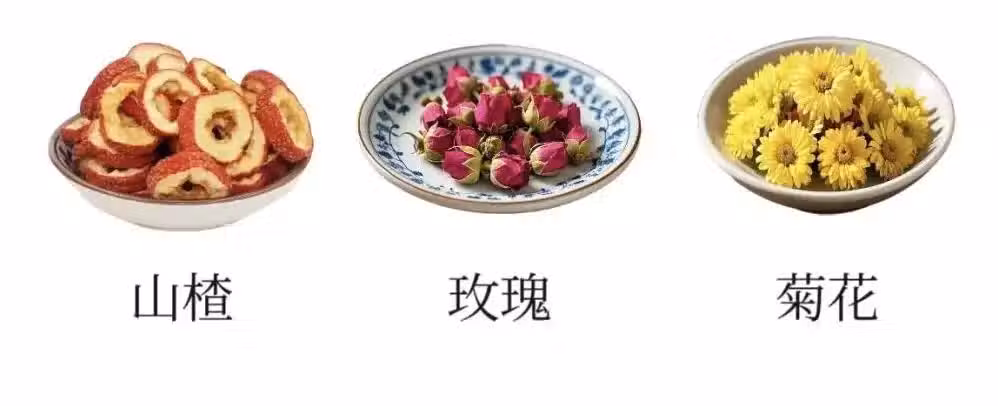 【食材】山楂10g、菊花5g、玫瑰5朵