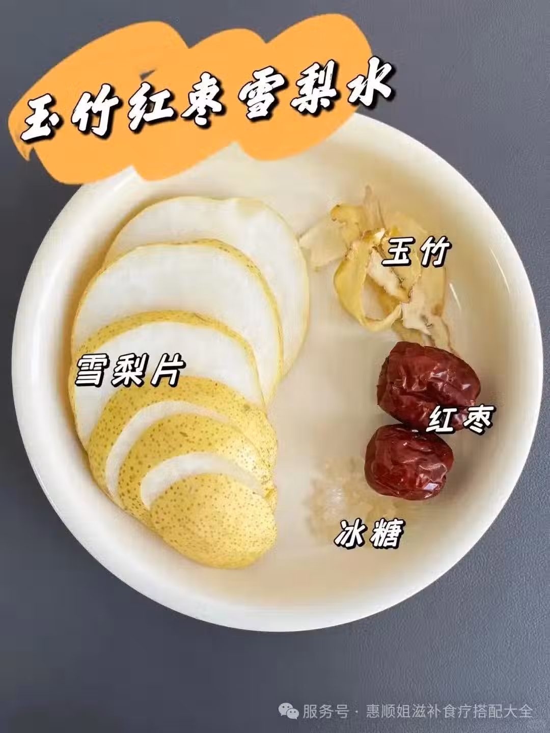 雪梨1個、玉竹3克、紅棗2顆、適量冰糖