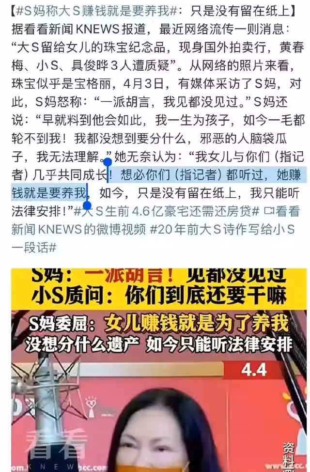 大S不到16歲就出道開始賺錢養家,S媽當自己女兒的經紀人。