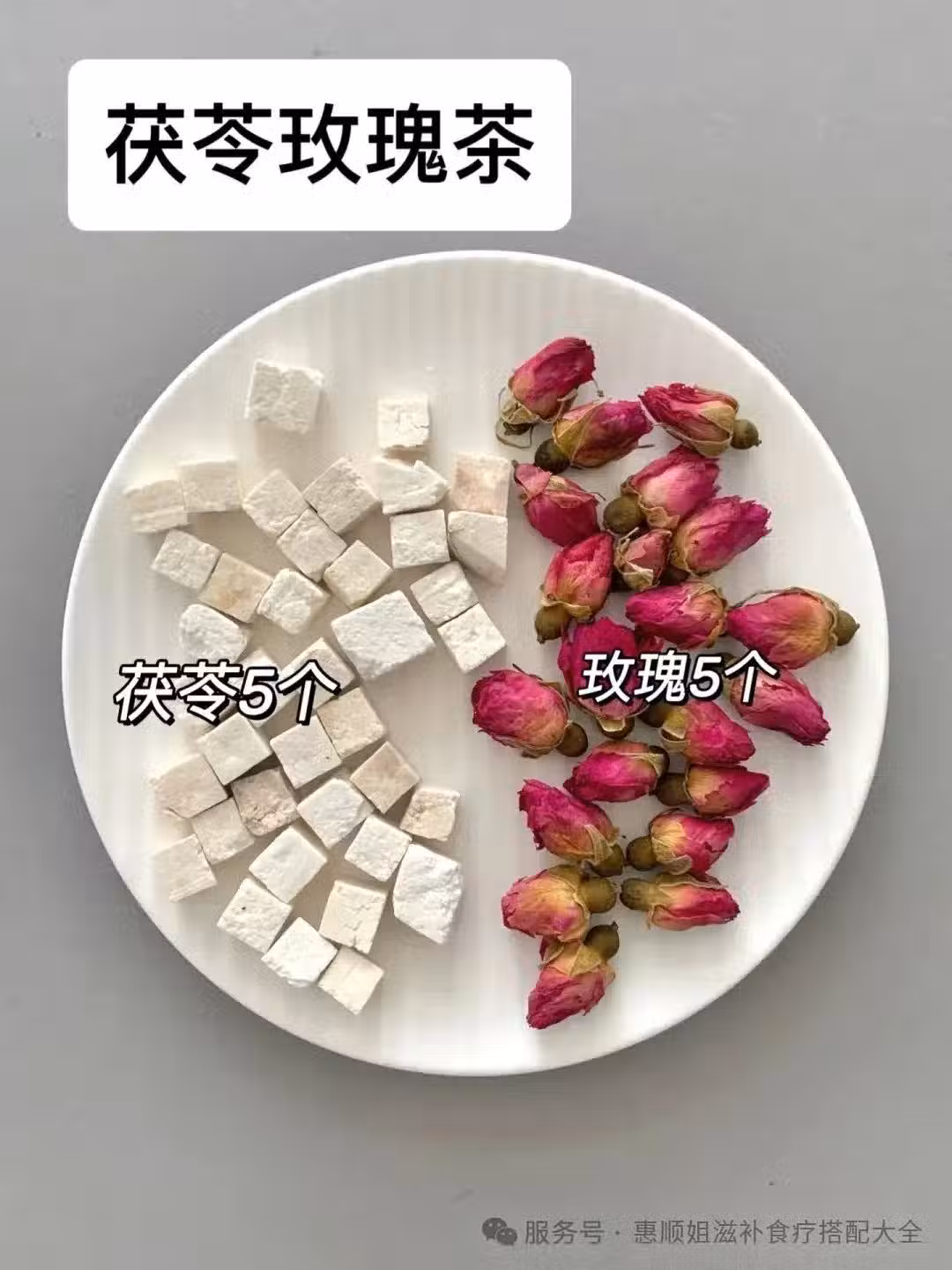 茯苓與玫瑰花的組合,以「健脾祛濕」為基礎,以「疏肝養顏」為特色,適合現代人群因壓力、情緒不暢導致的亞健康問題(如脾虛、皮膚狀態差等)。