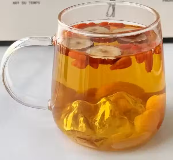 食材:黃芪5克、桂圓3顆、麥冬3粒、山楂干2片、枸杞8顆