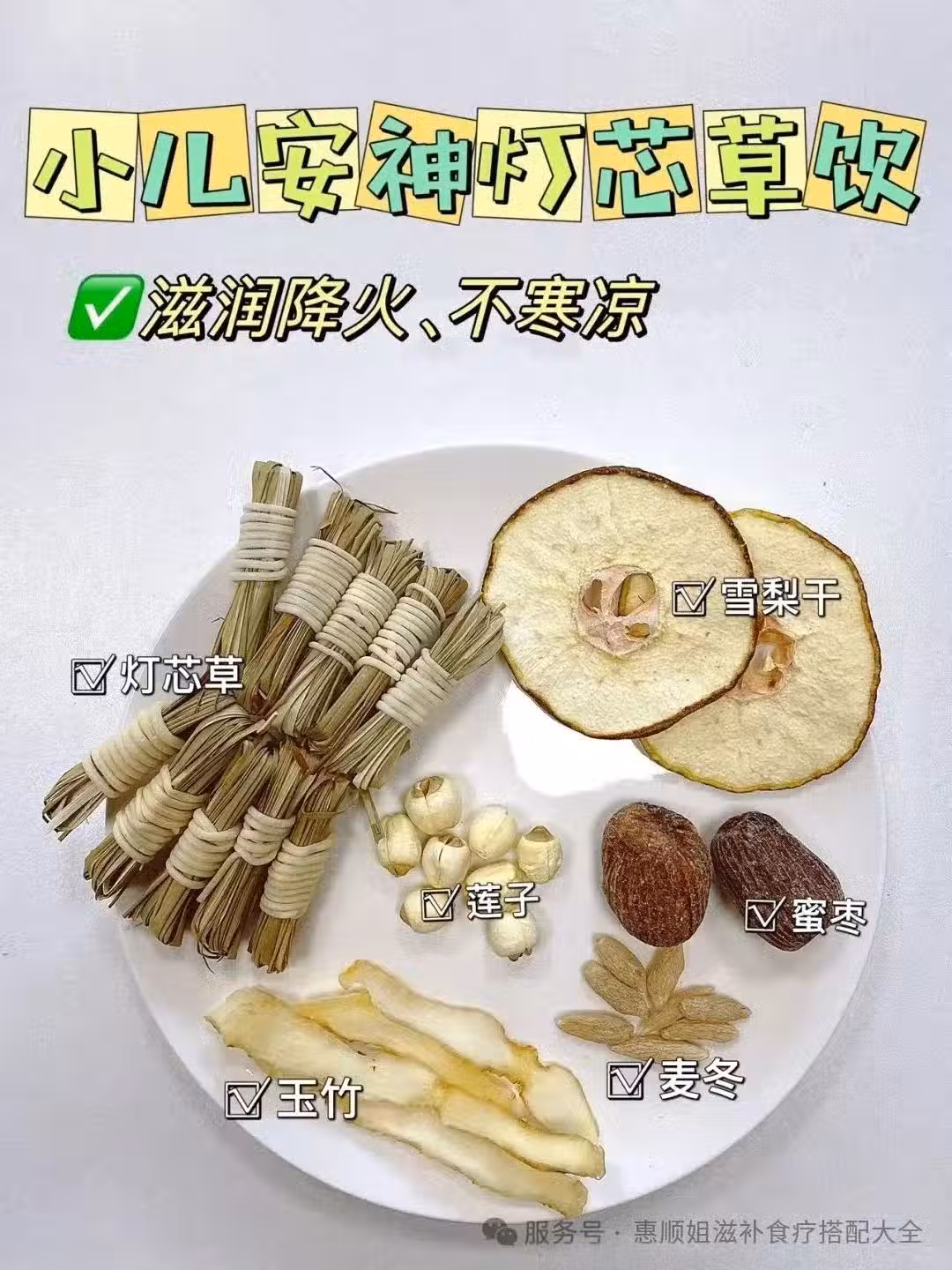⭐️食材:燈芯草、雪梨乾、蜜棗、玉竹、蓮子、麥冬