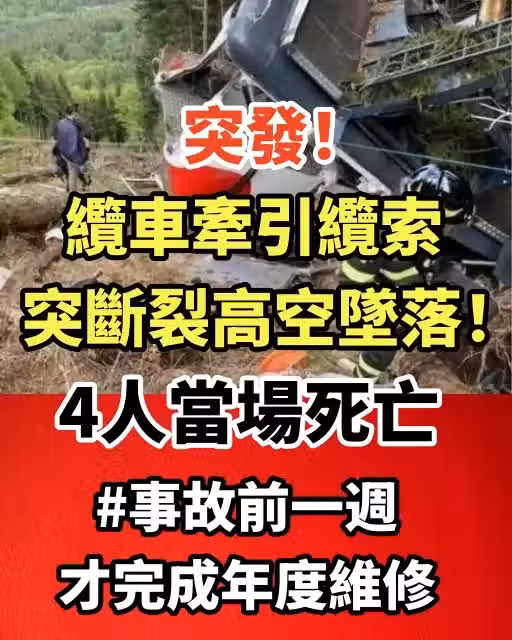 突發!南部景點纜車墜毀!至少4死1傷 #事故前一周才完成年度維修