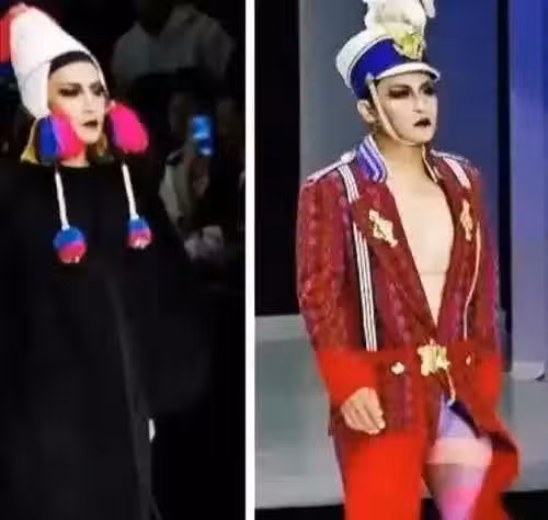 公司又不想在他身上虧錢,所以便想出了另一個方法,就是讓他穿上透視的衣服短褲走秀,以奇葩的造型博取眼球。