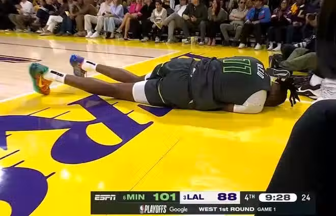 愛德華茲被狠狠的來了一腳就算了,因為他是這場比賽森林狼隊的老大,砍了22分,另外還有兩個奇兵,23分的里德也被湖人來了一下子,這更離譜。里德在去防守的時候,被湖人隊的范德比爾特狠狠的一肘子,對著臉上就是一下子,這明顯也是一個惡意的傷人動作。