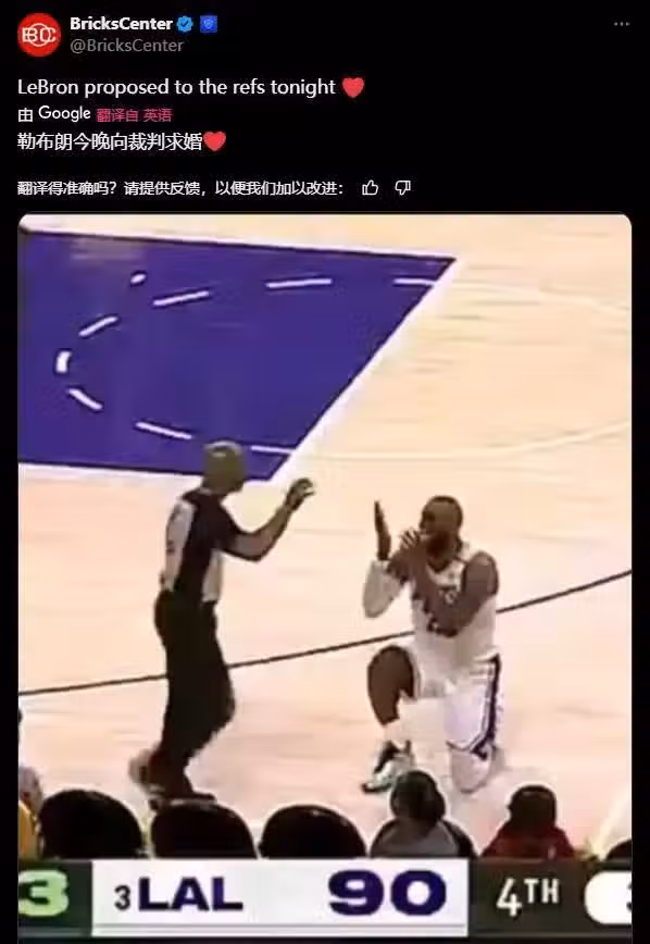 這種直接在季後賽的賽場上當場單膝跪地,跪倒在場邊找裁判要犯規的動作一出來,確實是引起了一片譁然,甚至有美國媒體調侃:「勒布朗今天晚上真是準備向裁判求婚嘛?」因為他以前有過這種跪地要哨子的場面,但畢竟是常規賽,季後賽里真沒見過。