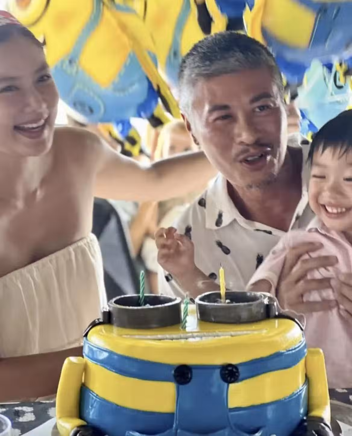 樂基兒在塞班島為兒子慶生,穿T恤熱褲身材健美,6歲兒子手腳修長