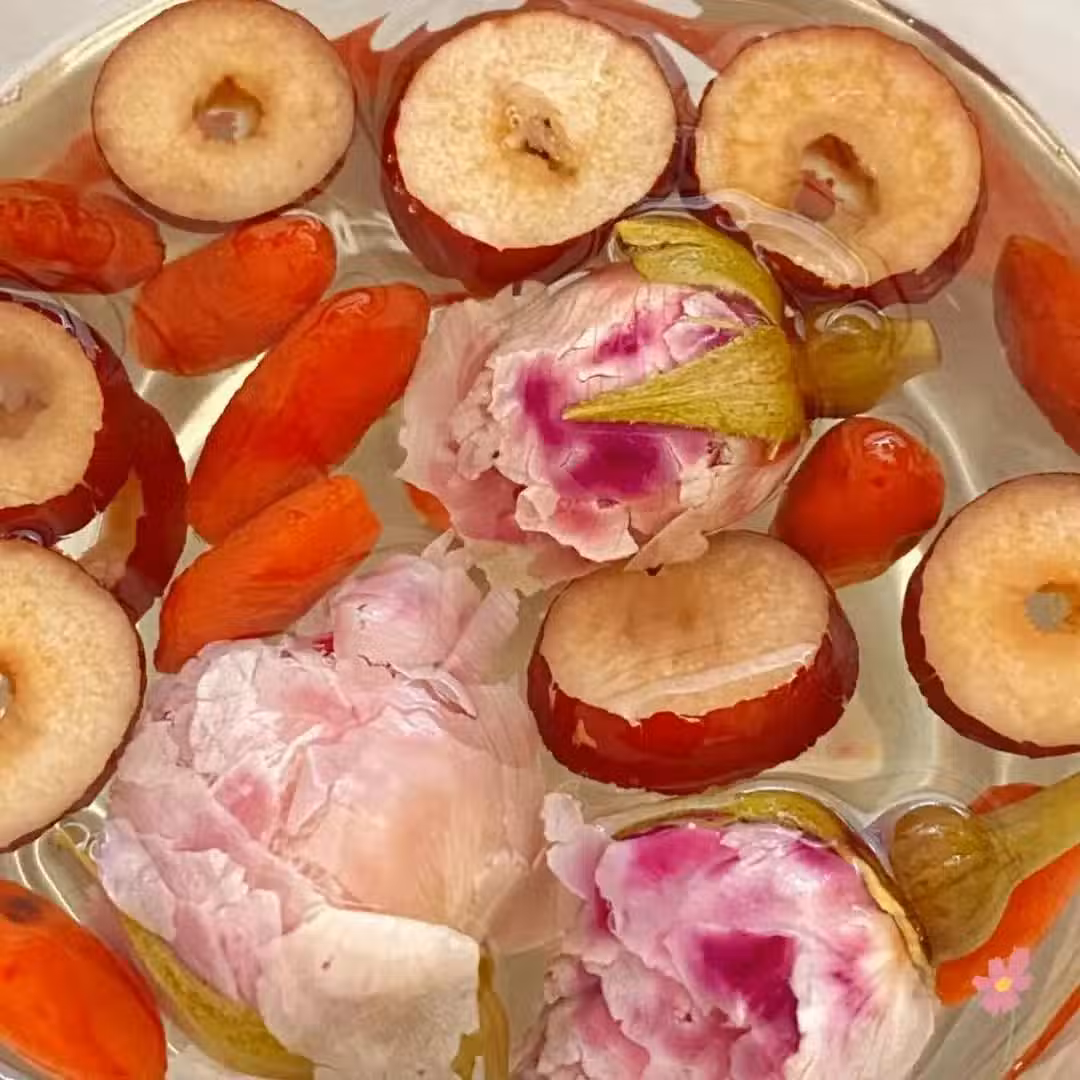 食材:5克黨參片(或1根黨參)、3朵玫瑰、1片老陳皮。
