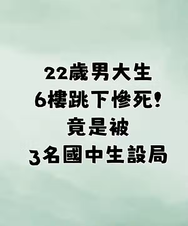 快訊/22歲男大生6樓跳下慘.死!竟是「被3名國中生設局」