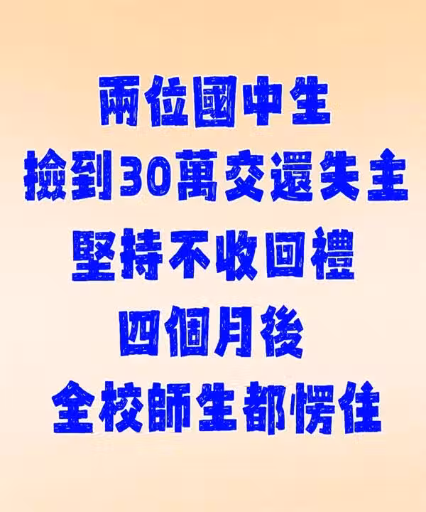 國中生「撿到30萬交還失主」堅持不收回禮!!4個月後全校師生都愣住…