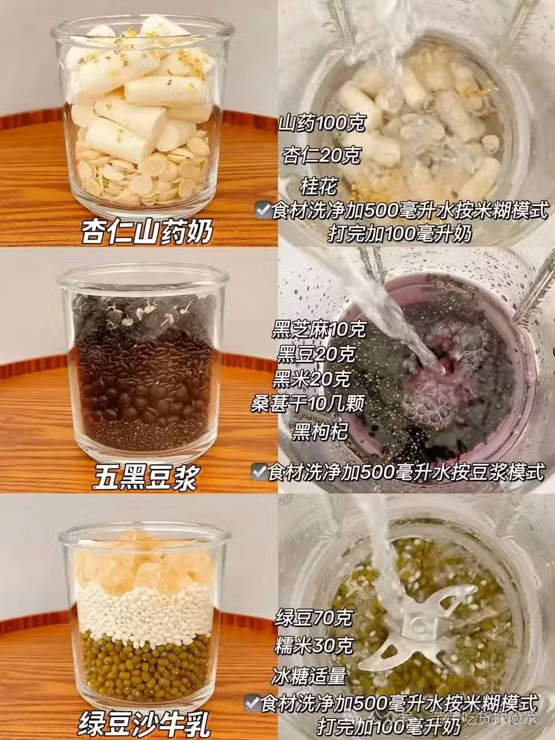 準備食材:黑芝麻,黑豆,黑米,黑枸杞,桑葚干,水。