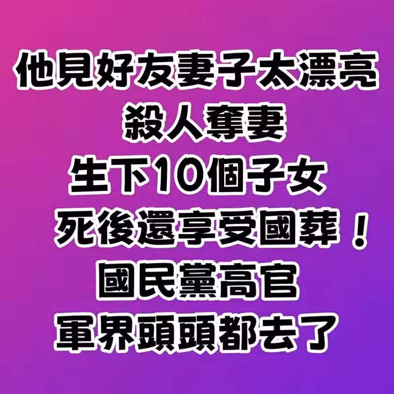 他見好友妻子太漂亮,🔪人奪妻,生下10個子女,死後還享受國葬 !國民黨高官、軍界頭頭都去了!