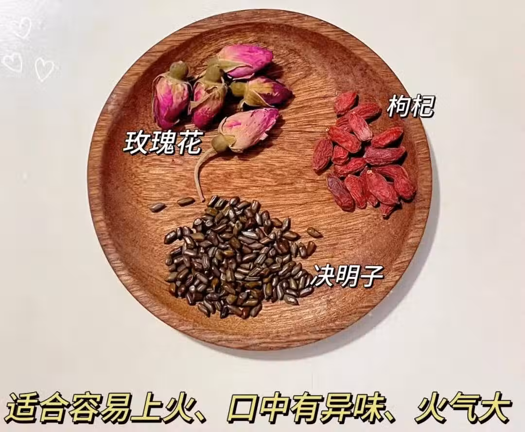 玫瑰5朵 , 枸杞5g , 決明子6g