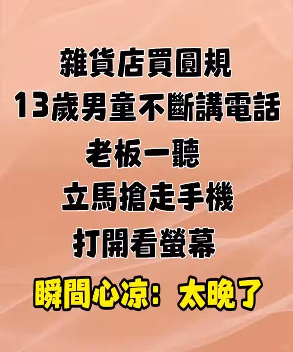 像是就有一名13歲的男孩,以「買圓規」為藉口,告訴媽媽要去一趟雜貨店,結果機智的老闆看到他在講電話,且內容越來越不對勁,於是趕緊一把搶過他的手機,但終究還是太晚了...