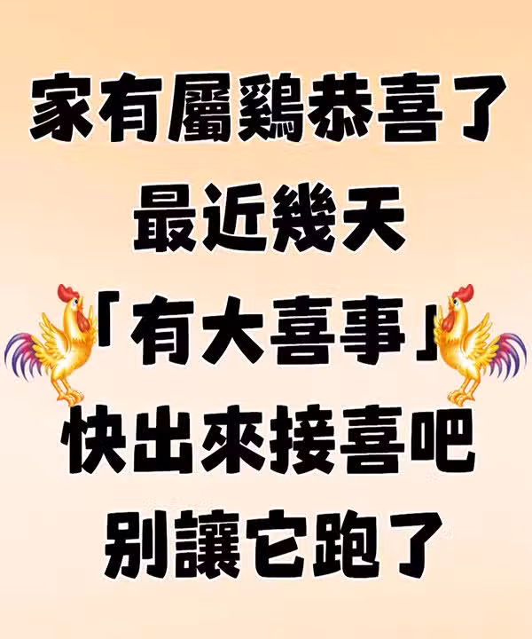 家有屬雞恭喜了!最近幾天「有大喜事」快出來接喜吧 別讓它「跑了」