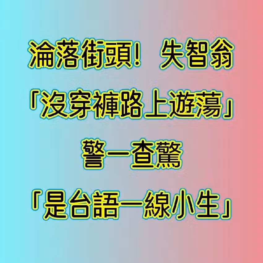 淪落街頭!失智翁「沒穿褲路上遊蕩」..警一查驚「儘是台語一線小生」
