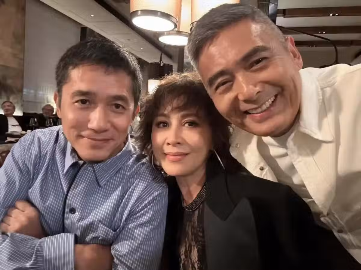 63歲梁朝偉參加派對,和周潤發同框,都有了白髮,看起來很有精神