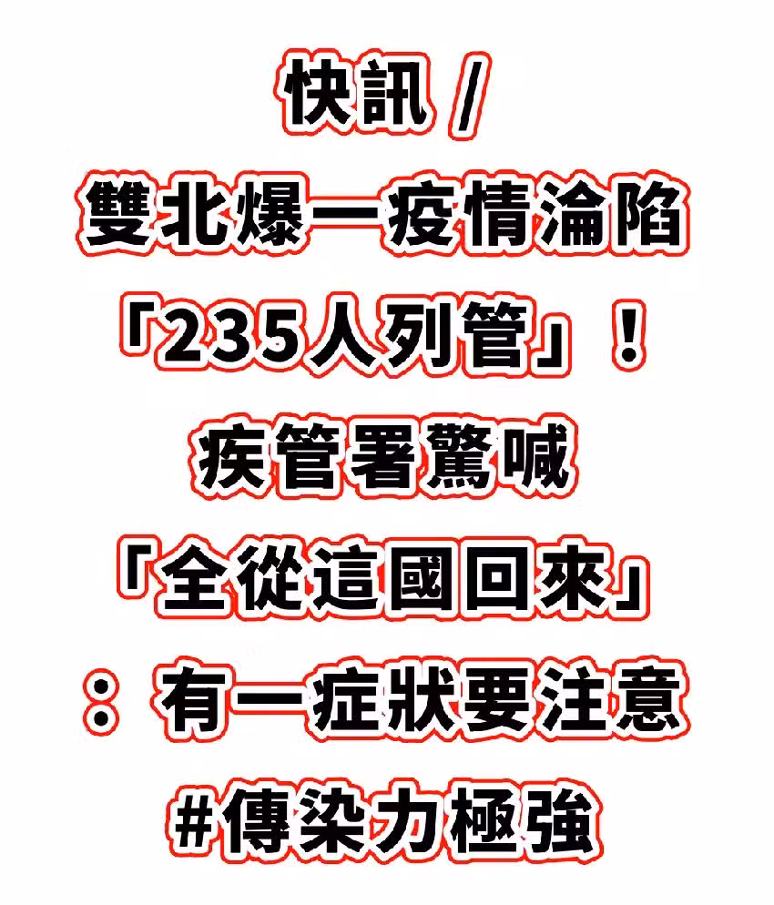 雙北爆一疫情淪陷「235人列管」! 疾管署驚喊「全從這國回來」:有一症狀要注意 #傳染力極強