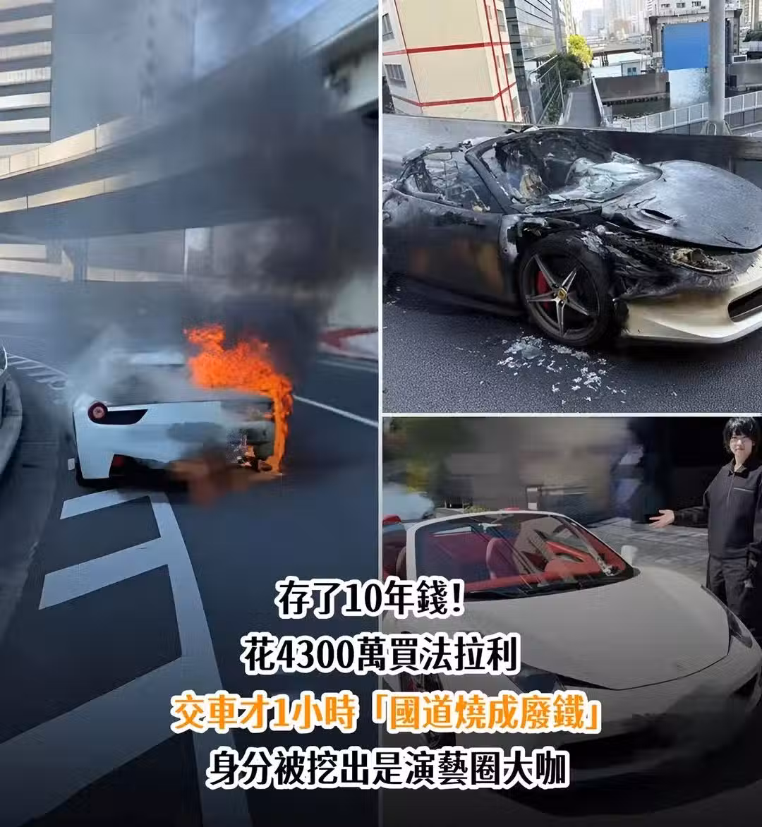 存了10年錢!花4300萬買法拉利,交車才1小時「國道燒成廢鐵」身份被挖出「是演藝圈大咖」