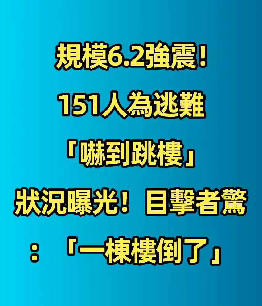 規模6.2強震!151人為逃難「嚇到跳樓」狀況曝光 目擊者驚:「一棟樓倒了」