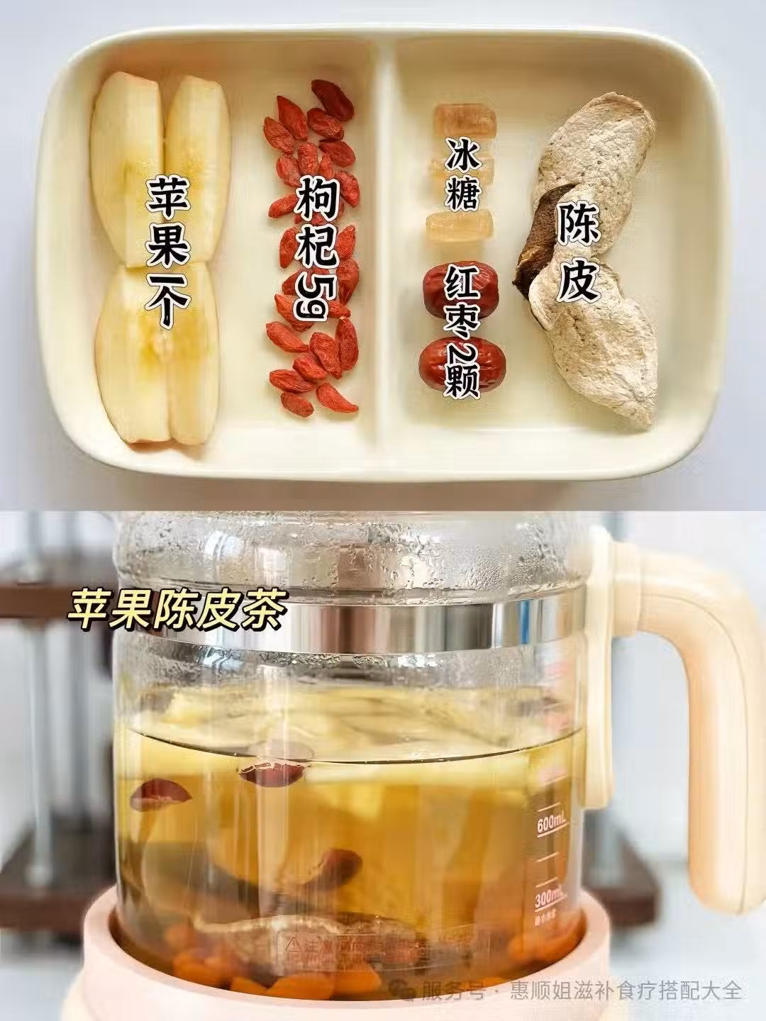 🍎 蘋果1個|陳皮|去核紅棗2顆|枸杞5g|冰糖