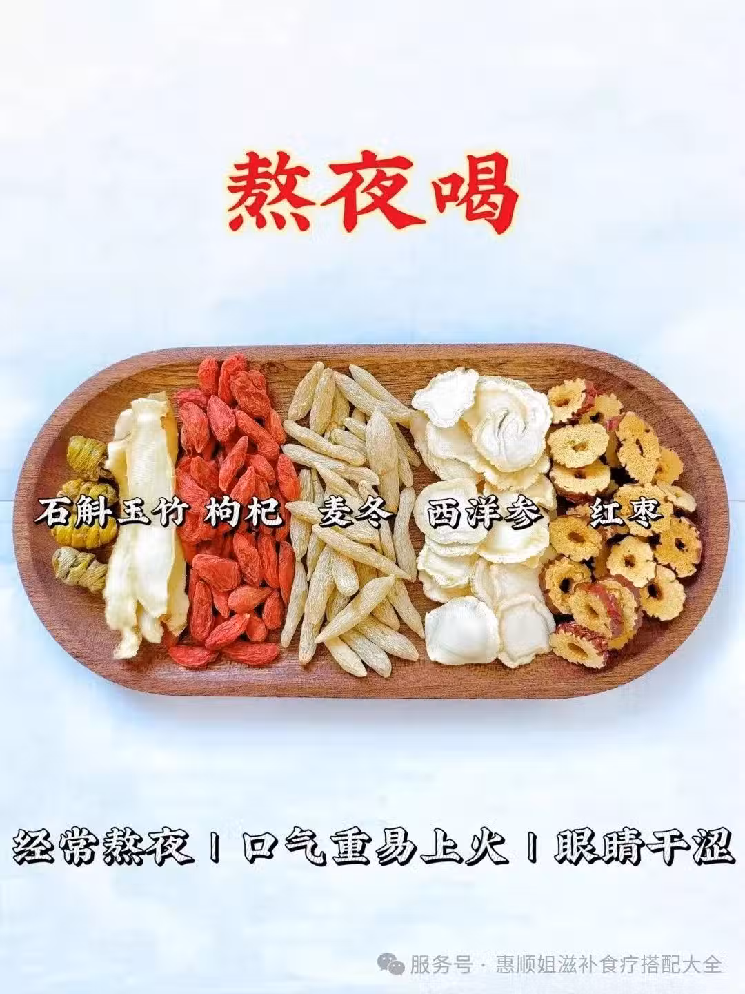 🌿配料:石斛6克、枸杞10克、麥冬10克、西洋參3克、紅棗3克、玉竹10克