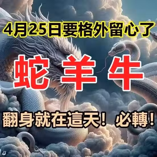 (蛇,羊,牛)4月25日要格外留心了,翻身就在這天!