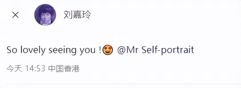 劉嘉玲還特意在文案中寫道:「很高興見到你。」