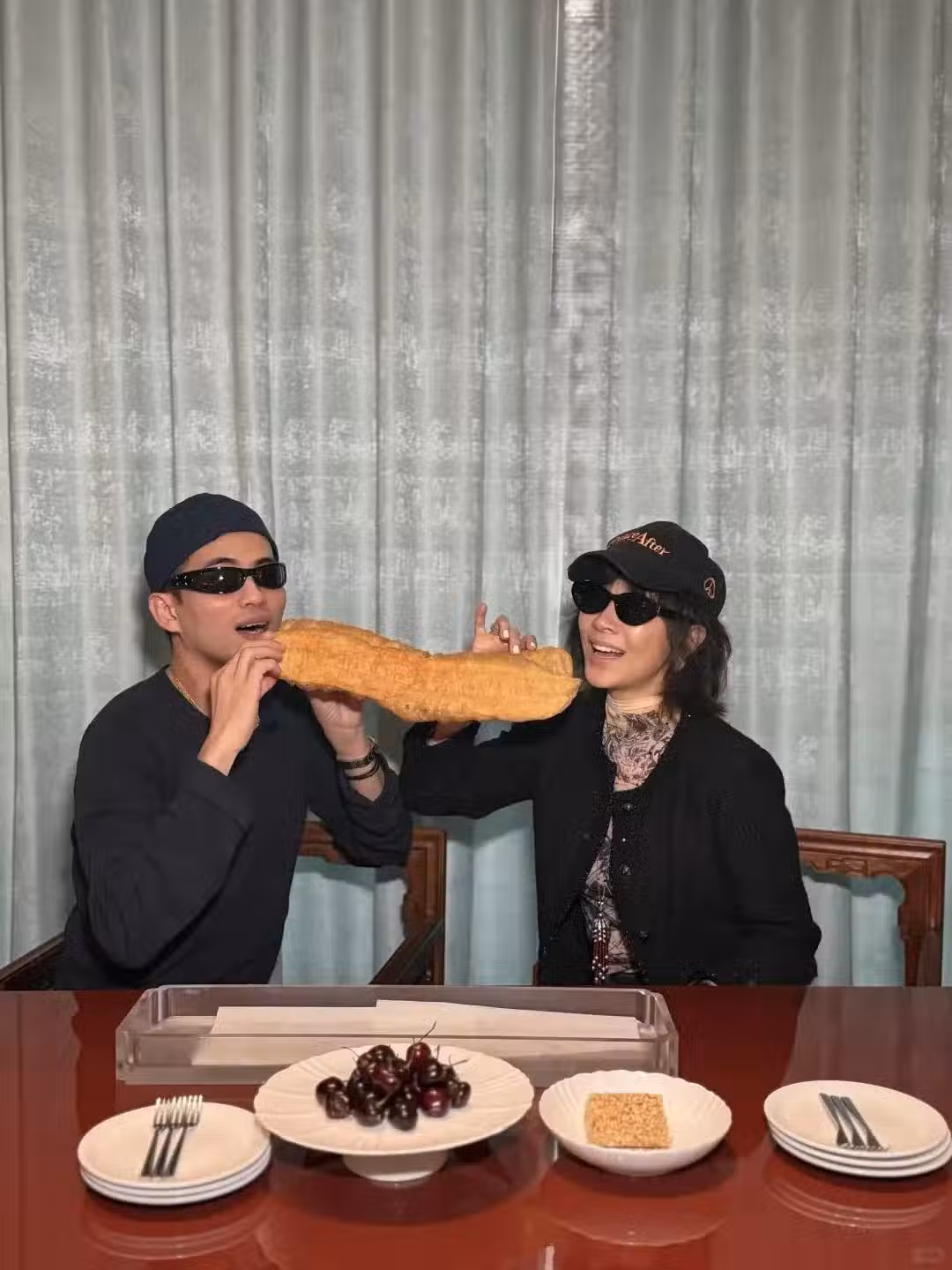 另一張照片中,劉嘉玲還和這位後輩擺拍同吃一根油條,畫面中的她微微側著臉,一臉嬌羞的看著鏡頭,少女感滿滿。