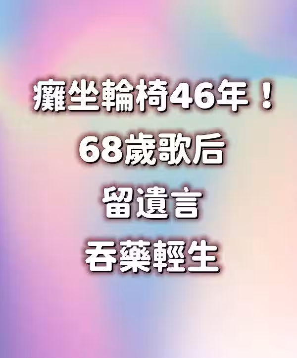癱坐輪椅46年!68歲歌后「留遺言吞藥輕.生」