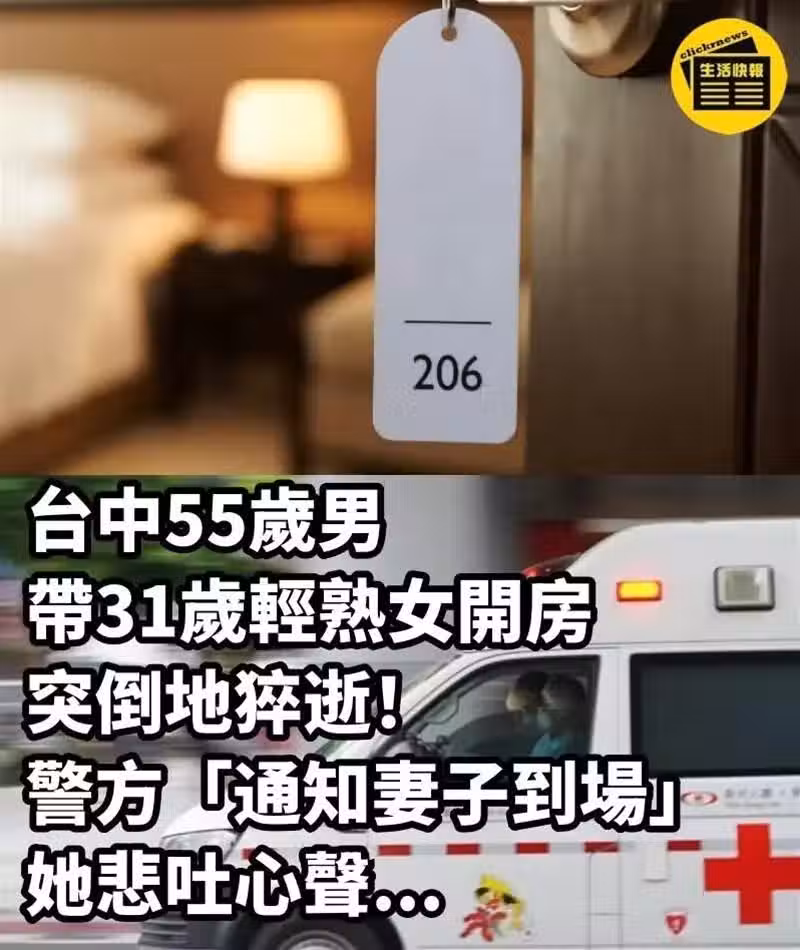 台中摩鐵傳發生7命案!55歲男「帶31歲輕熟女開房」突倒地暴斃 妻子到場,悲吐心聲