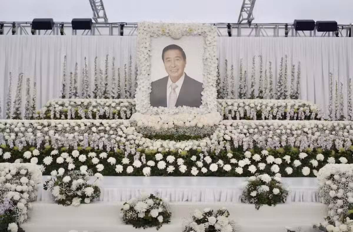 李兆基葬禮鋪滿白花,倆兒子哀傷迎客,靈堂地下設佛壇請高僧誦經