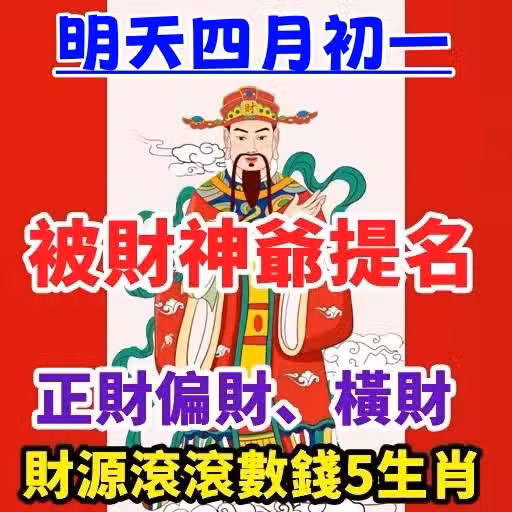 🔔 明天【四月初一】被財神爺點名!這5個生肖正財、偏財、橫財全面開花,財源滾滾來!