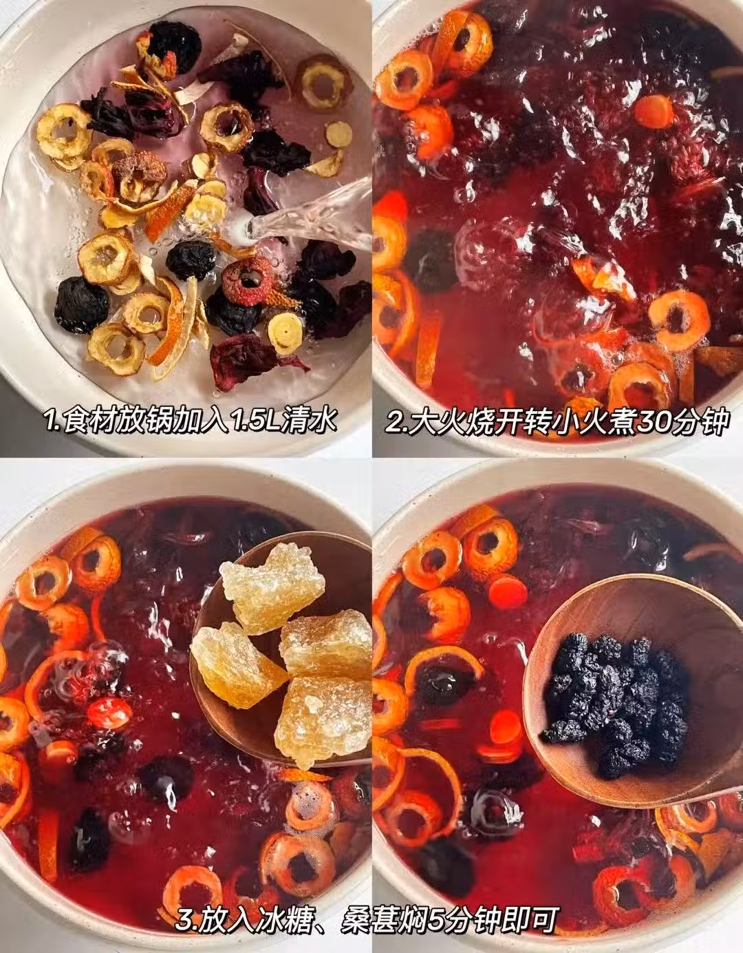 山楂:消食化積、活血化瘀。含山楂酸、解脂酶,促進脂肪分解,適合高脂飲食後飲用。如果是胃酸過多者需減量,避免加重反酸。