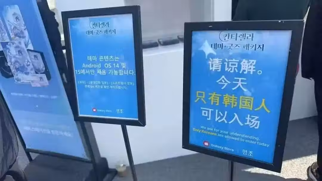 不過中國人出門在外旅遊碰壁這事,也不僅發生在泰國,就連某國產遊戲在韓國的活動現場,都放出了專門寫上中文的指示牌,4月8日消息傳到國內,連不少官方媒體都直呼看不下去。