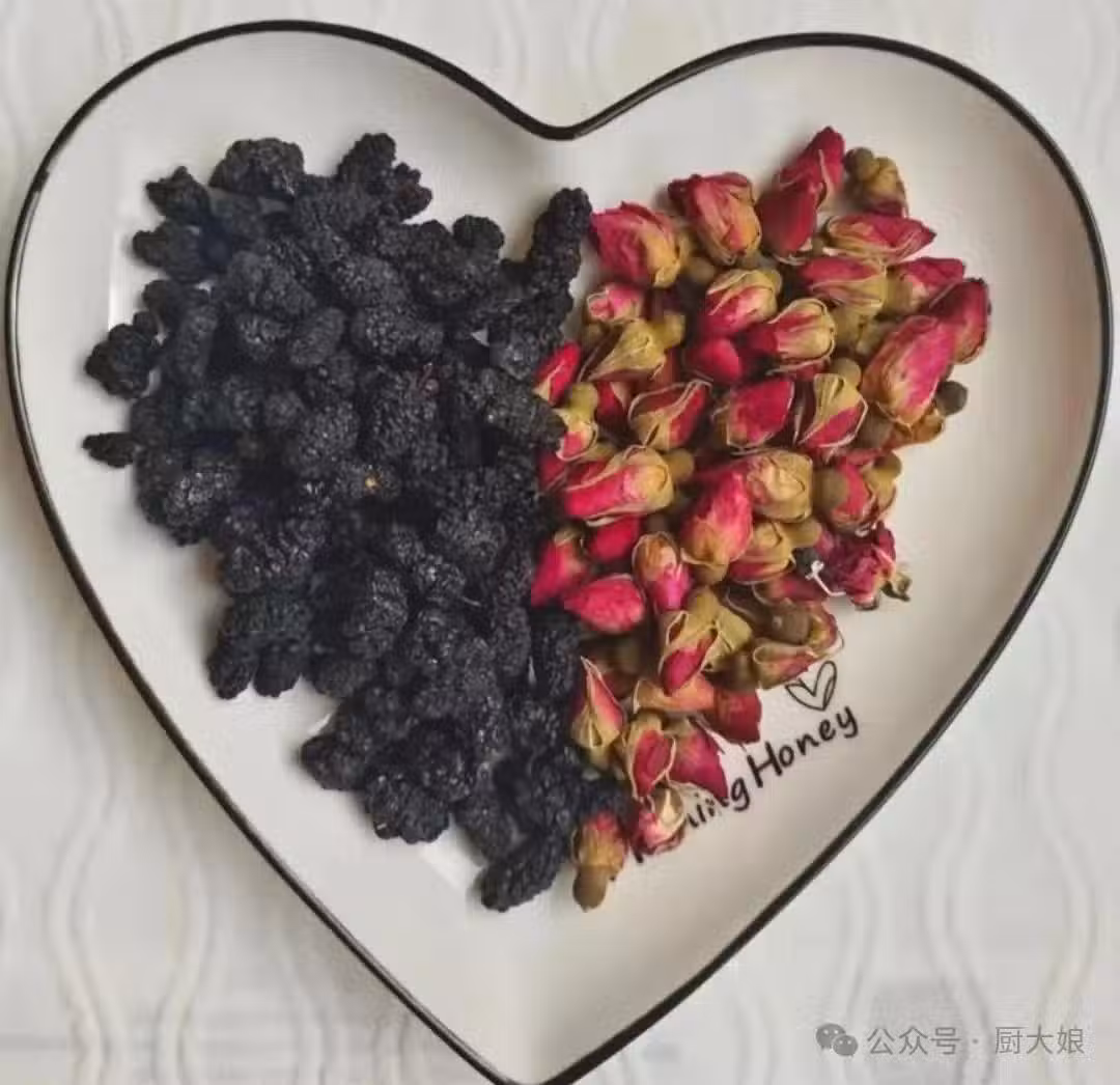 ✅【桑葚玫瑰花茶】 ❤️疏肝淡斑、潤腸通便、滋陰補血 食材:桑葚,玫瑰花,紅棗,黑枸杞