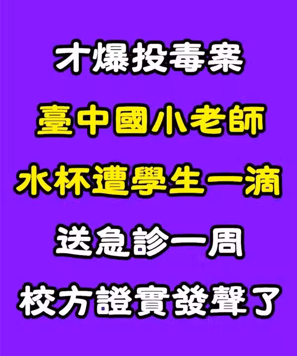 才爆投毒案!台中國小老師「水杯遭學生滴一滴」送急診一周  校方證實發聲了