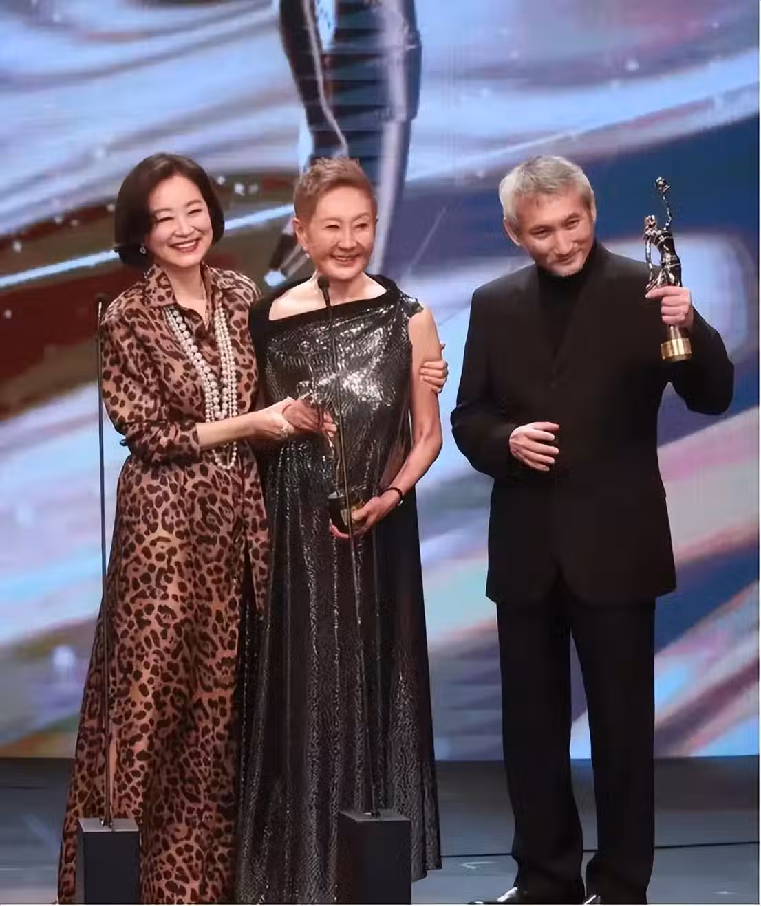 此次林青霞也很開心,在台上見證兩位好友能夠得到終身成就獎,她表示最更開心的是,這個獎項由她來頒發。