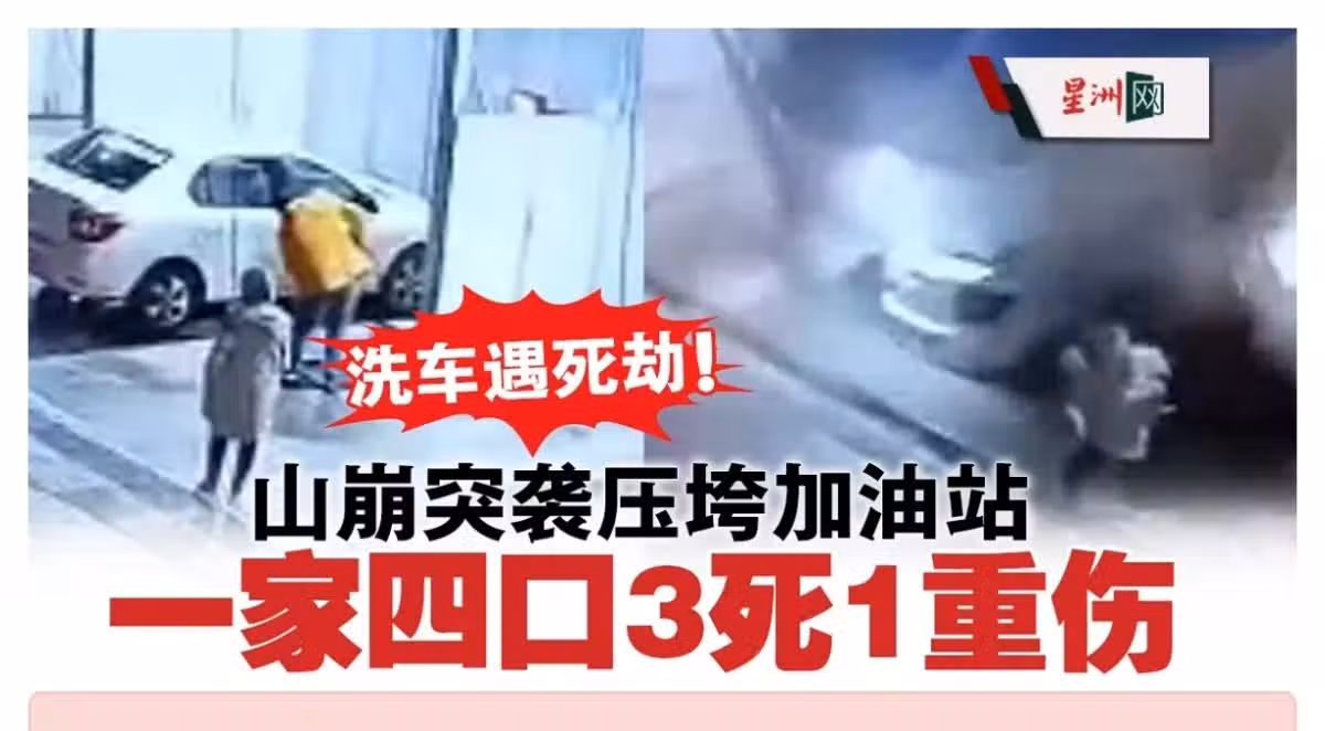 一家四口加油站洗車遇死劫!山崩突襲壓垮加油站 釀3死1重傷