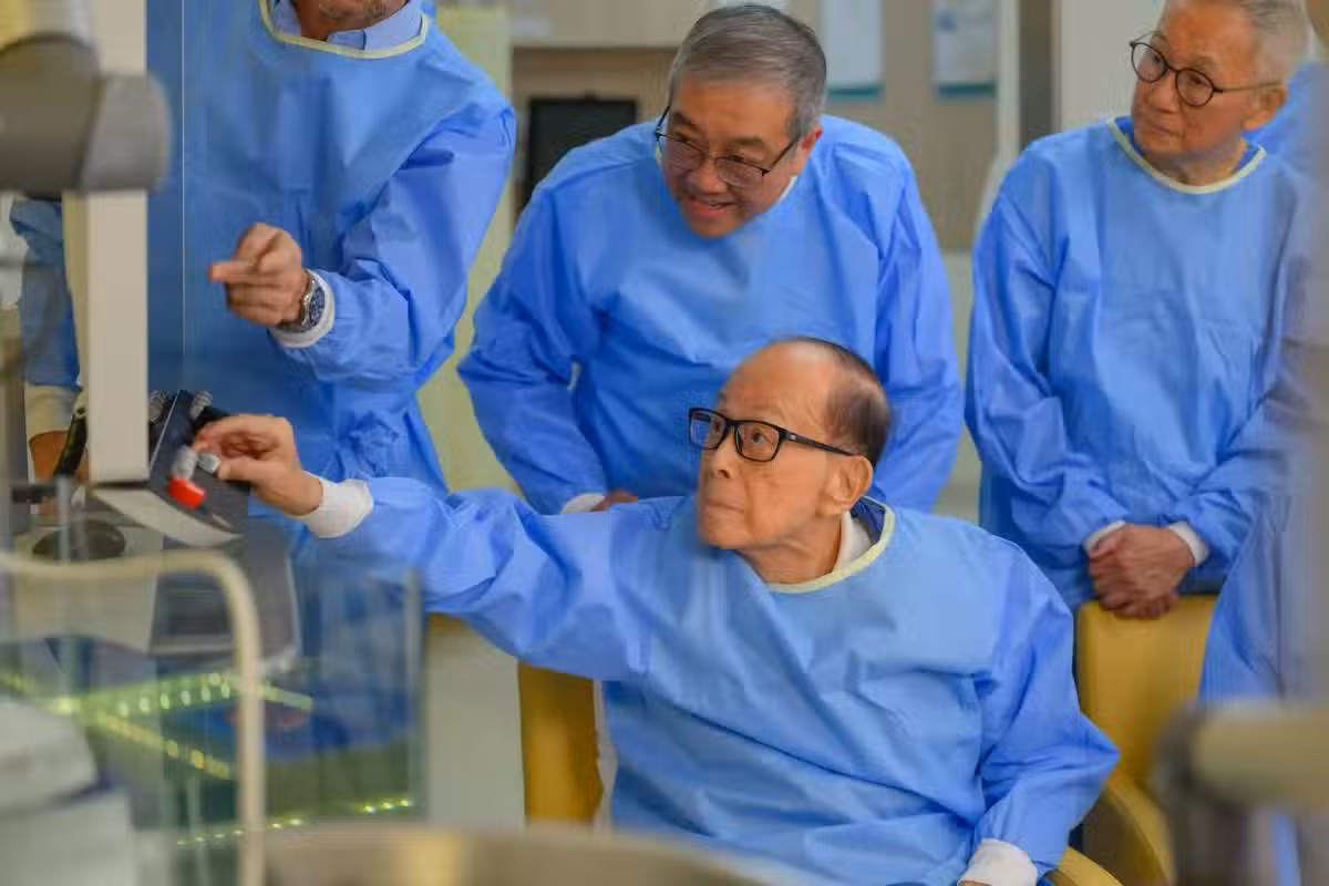 96歲李嘉誠終於現身,到醫院動手做實驗,笑出一臉皺紋